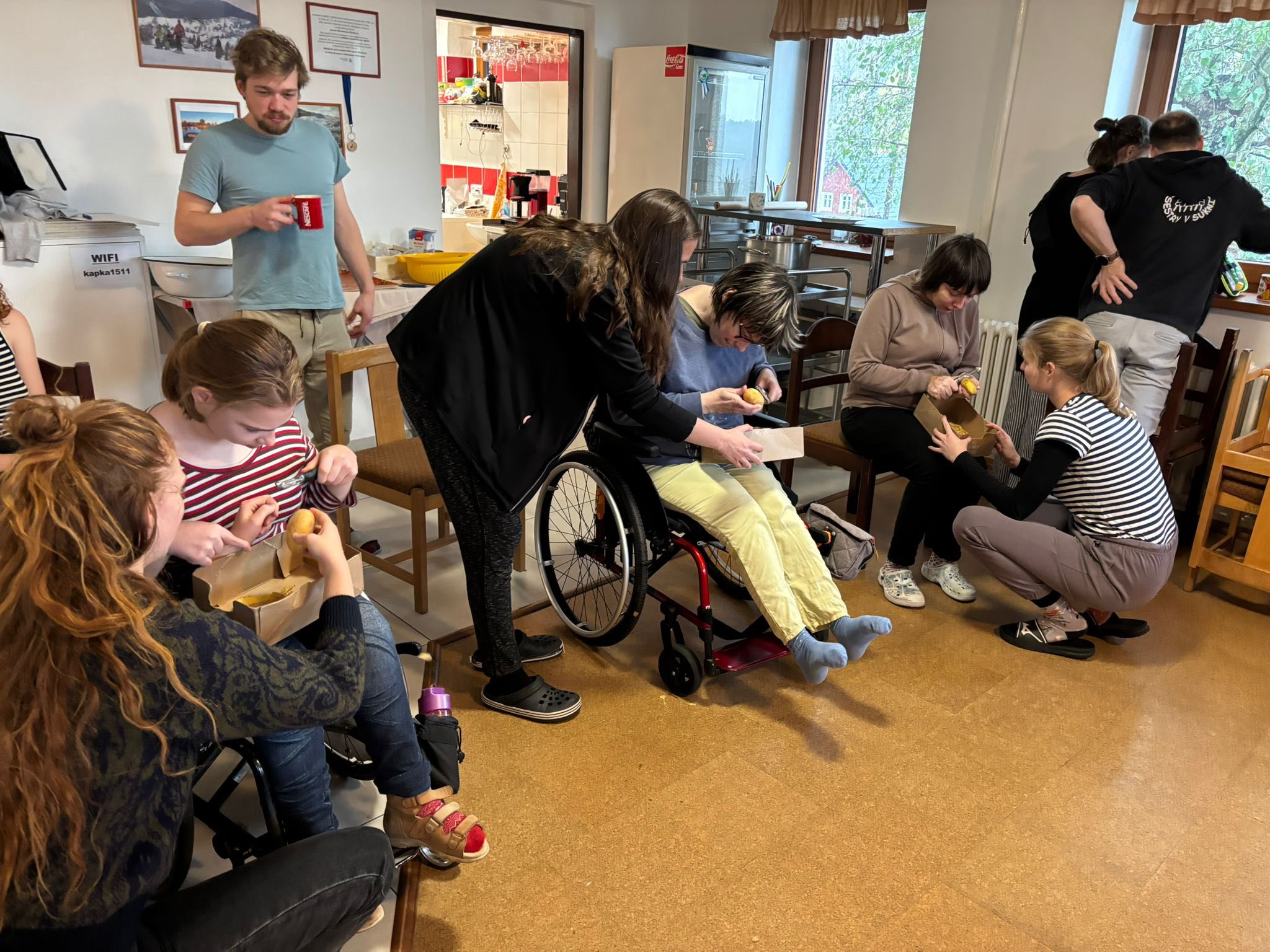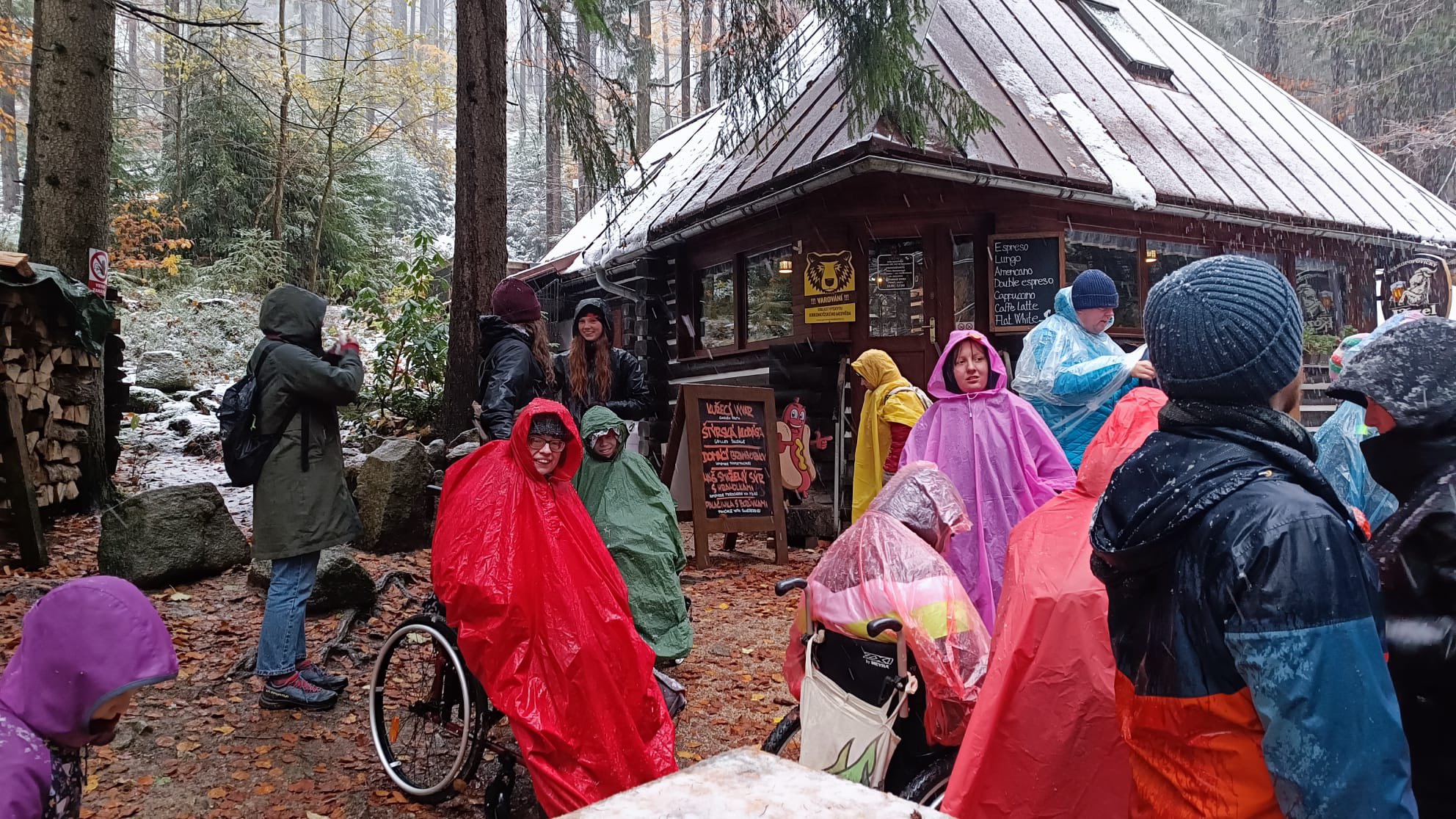 Ačkoliv nám teplo a pohodlí společenské místnosti nabízely prostor k nejrůznějším aktivitám a hrám, které si naši kamarádi moc užili, nezaháleli jsme a vyrazili hned na několik výletů. Od kratší procházky po okolí ve slunném počasí a následného popíjení horké čokolády v kavárně až po horský výšlap k Mumlavskému vodopádu během chumelenice. Potvrdilo se, že se nezalekneme žádného počasí ani terénu.